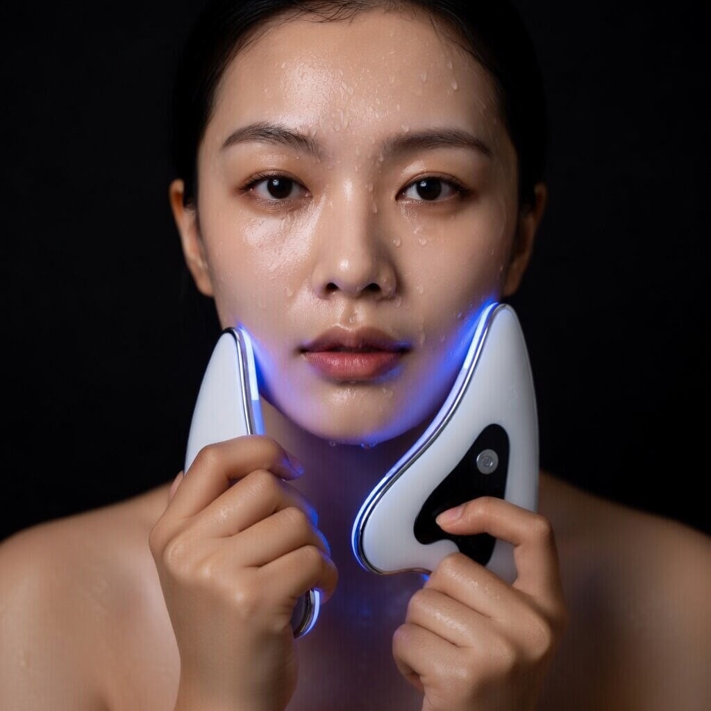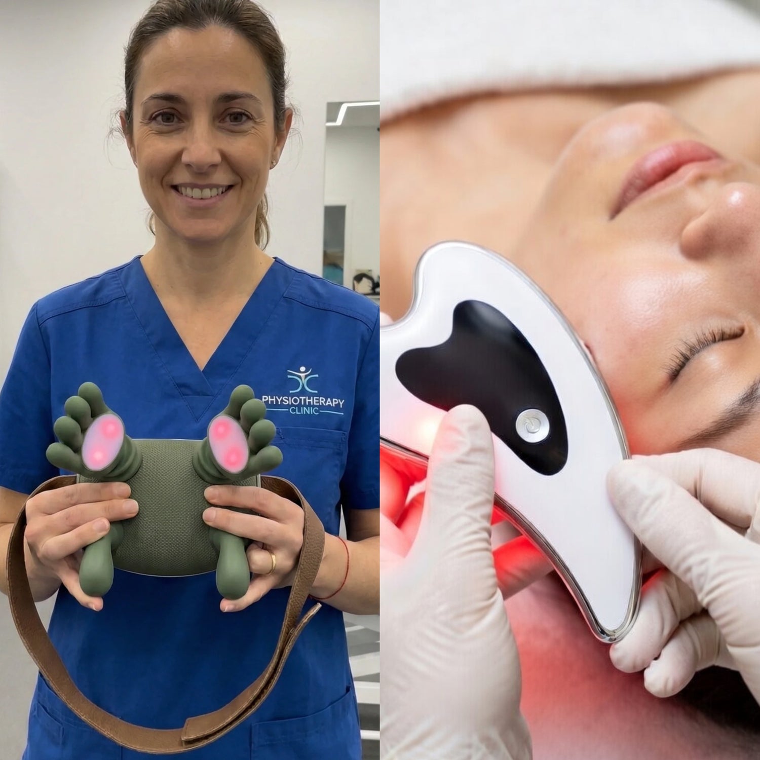 Red light therapy, therapeutic heat, and targeted vibration — the same methods used in physio clinics and dermatology offices, now in your hands.